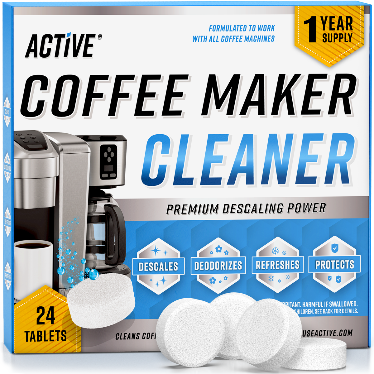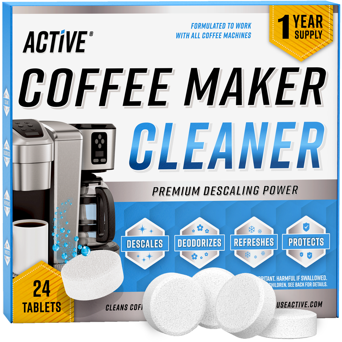 Cleaning your coffee or espresso maker is as easy as 1-2-3 with ACTIVE.