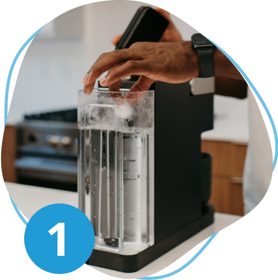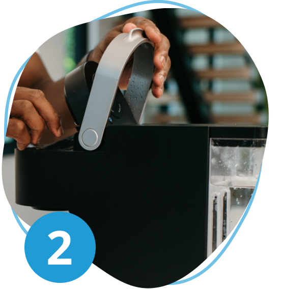 Fill the water reservoir to the maximum fill line and add 1 cleaning tablet.